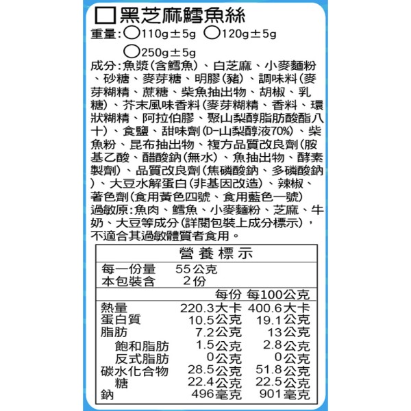 黑芝麻鱈魚絲 120